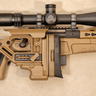 The AX chassis incorporates an adjustable buttstock for length of pull and cheek height, along with a full length forend designed to support accessory mounting as required. The rifle is paired with a Burris XTR II 8–40x optic, offering a broad magnification range suitable for long range applications, secured in Leupold rings for a stable mounting interface. No original box or additional accessories included.