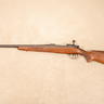 The BRNO ZKK 600 is a bolt action sporting rifle manufactured by Zbrojovka Brno in Czechoslovakia, built on a Mauser-type controlled round feed action with a full length claw extractor, fixed blade ejector, and dual opposing locking lugs. The ZKK 600 is the medium length action variant of the ZKK series, sized for standard length cartridges such as .270 Winchester, 7x57mm Mauser, and .30-06 Springfield, slotting between the shorter ZKK 601 and the magnum length ZKK 602. The action incorporates a single set trigger mechanism, engaged by pushing the trigger forward to achieve a lighter pull for precision shooting. The rifle feeds from an internal box magazine with a hinged floorplate released by a catch inside the trigger guard.