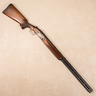 This example is the trap model fitted with 30 inch ventilated rib barrels. The top barrel is marked 18.4 and the bottom 18.3, reflecting their bore diameters. The shotgun features checkered walnut stock and fore-end with trap style stock geometry and ventilated rib barrels. No case or accessories are included.