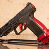 This example is finished in black with red Taylor Freelance accents and fitted with a Taylor Freelance red backstrap, magwell, and back plate. The slide is optics-ready and supplied with several optic-mounting plates for common optic footprints, fiber-optic front and adjustable rear sights. A Cajun Gunworks reduced-power trigger return spring is fitted to lighten the reset characteristics while retaining the factory trigger geometry.