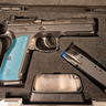 The pistol features a cold hammer forged barrel, double action/single action trigger system, and extended magazine release intended for competition handling. This example has been cut for the Dawson Precision Optic (DPO) plate system and includes a DPO RMR mounting plate with integrated rear iron sight. The DPO system allows interchangeable plates so the slide can be configured for different optic footprints while retaining a rear sight mounted on the plate itself. Original case and three magazines included.