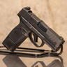 The polymer frame uses ergonomic texturing and a streamlined control layout, including a reversible magazine release. The striker fired action provides consistent trigger operation, and the grip geometry supports full capacity magazines in a compact footprint. This configuration balances size, capacity, and adaptability for carry or general use. No optics cover plated included.
