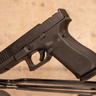 This example features a 4.49 in barrel and an nDLC-finished slide machined with an Aimpoint ACRO cut for direct mounting of compatible ACRO footprint optics. Controls follow Glock Gen 5 layout: Safe Action striker system, reversible magazine catch, and ambidextrous slide stop. Enhanced front and rear slide serrations improve tactile manipulation. Accompanied by three 10-round magazines and original case.