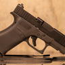 This model features a 3.41 in Glock Marksman Barrel (GMB), a diamond-like carbon (DLC) treated slide, and a textured ergonomic polymer frame with an accessory rail for lights or ancillary devices. Sights are factory 3-dot configuration, controls include a reversible magazine catch. Accompanied by original case and three 10-round magazines, no cover plate.