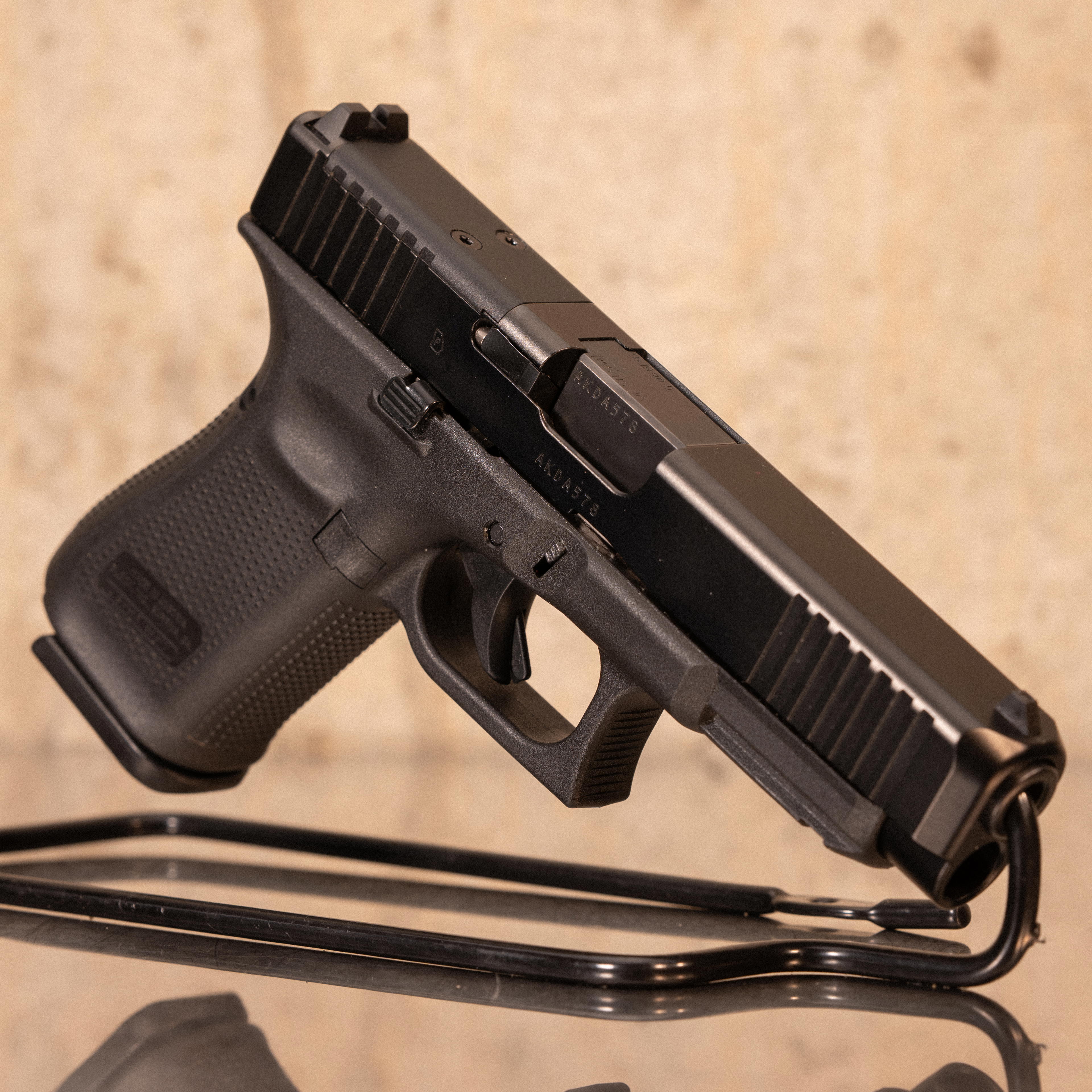 This example pairs a 4.80 in barrel and a nDLC-coated slide with a Glock 19 pattern polymer frame. The MOS pattern slide allows for straightforward optic integration. Controls remain classic Glock -- reversible magazine catch, Safe Action striker system, and standard magazine capacity. Accompanied by original box and three 15-round magazines.
