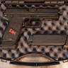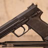 This example is fitted with the H&K Jet Funnel magwell, which aids with ease and consistency of reloads. The pistol operates in traditional DA/SA with a frame mounted control lever that functions as both safety and decocker. Controls, grip geometry, and balance remain consistent with the standard USP series, while the Jet Funnel adds mass and stability at the grip base.