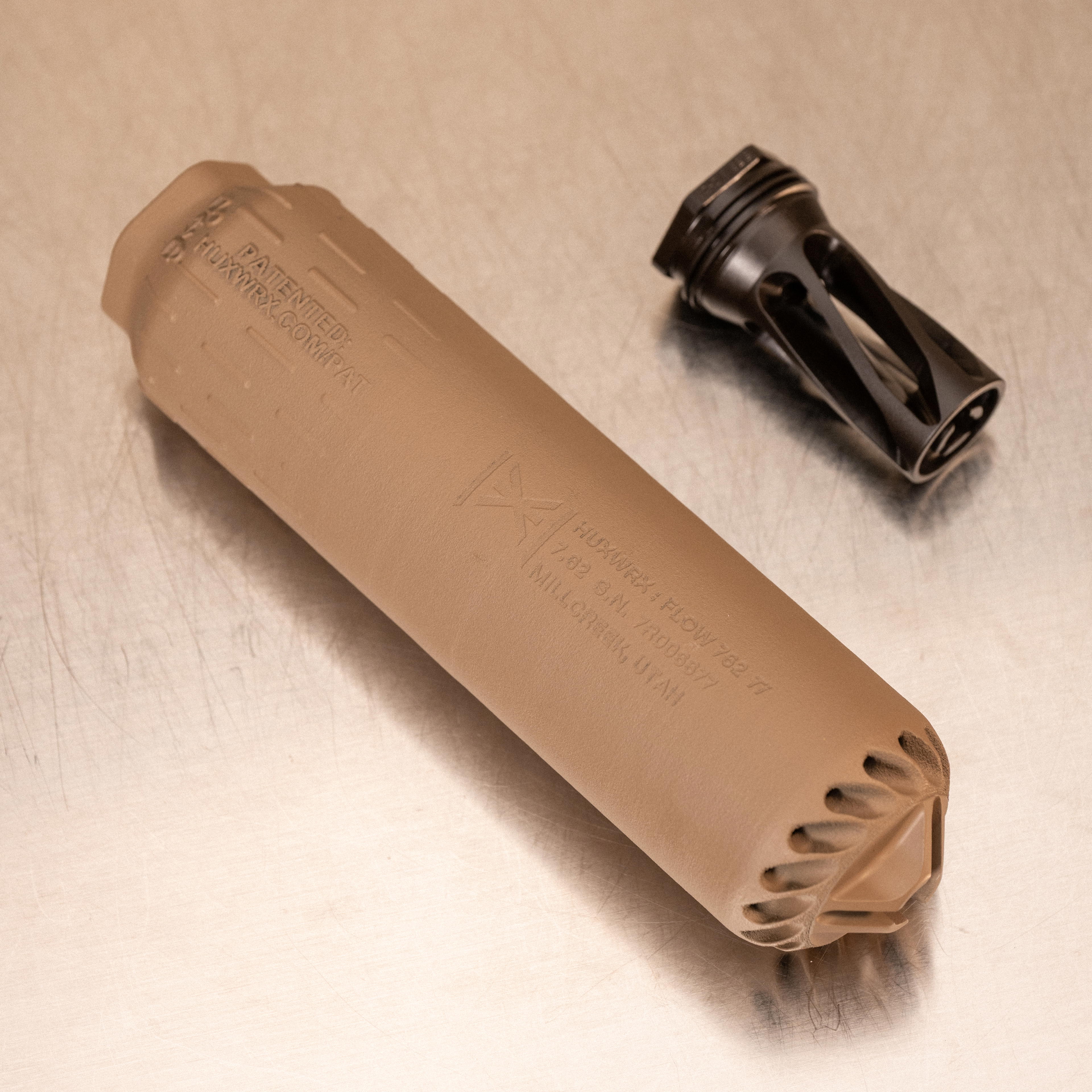 HUXWRX Flow 762 Ti Rifle Suppressor FDE with 556 QD Flash Hider
