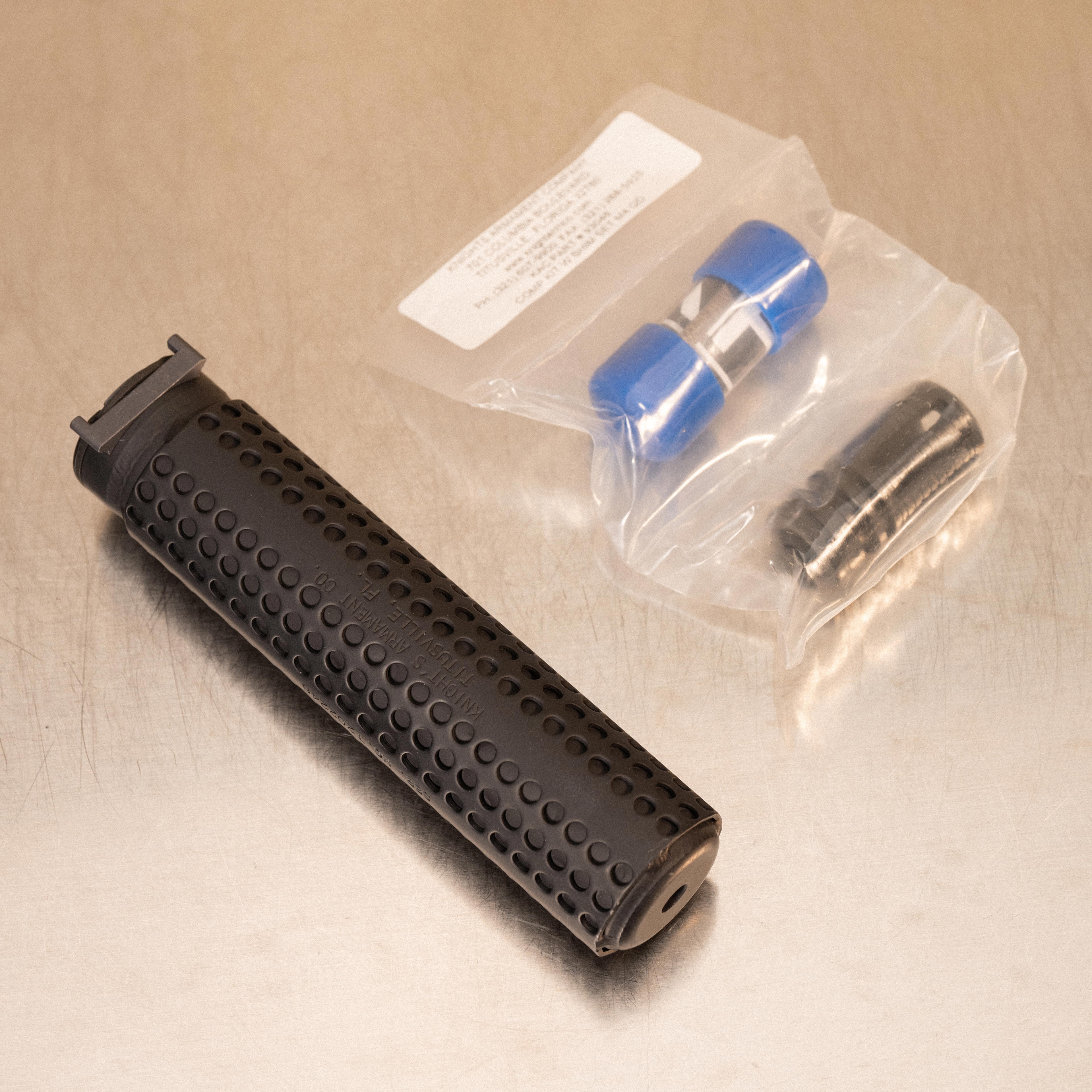 This suppressor interfaces with QDSS-compatible muzzle devices, including the M4QD flash hider, M4QD MAMS, and Triple Tap compensator. This example includes a 1/2x28 M4QD flash hider kit for direct installation on standard 5.56 barrels. The NT4 legacy design emphasizes durability, alignment consistency, and sustained performance under prolonged firing schedules.