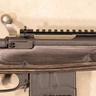 The Ruger Gunsite Scout is a bolt action rifle developed in collaboration with the Gunsite Academy, built on a controlled round feed action utilizing a full length claw extractor and fixed blade ejector. The receiver incorporates a three position wing safety on the bolt shroud and an integral recoil lug. The rifle features a forward mounted Picatinny rail on the barrel, intended for use with long eye relief optics in the traditional scout rifle configuration. The cold hammer forged barrel is free floated within the stock and fitted with a flash suppressor. Sights consist of a post front sight with protective wings and an adjustable ghost ring rear sight. The rifle feeds from a detachable box magazine and the stock incorporates a length of pull adjustment system using spacers.