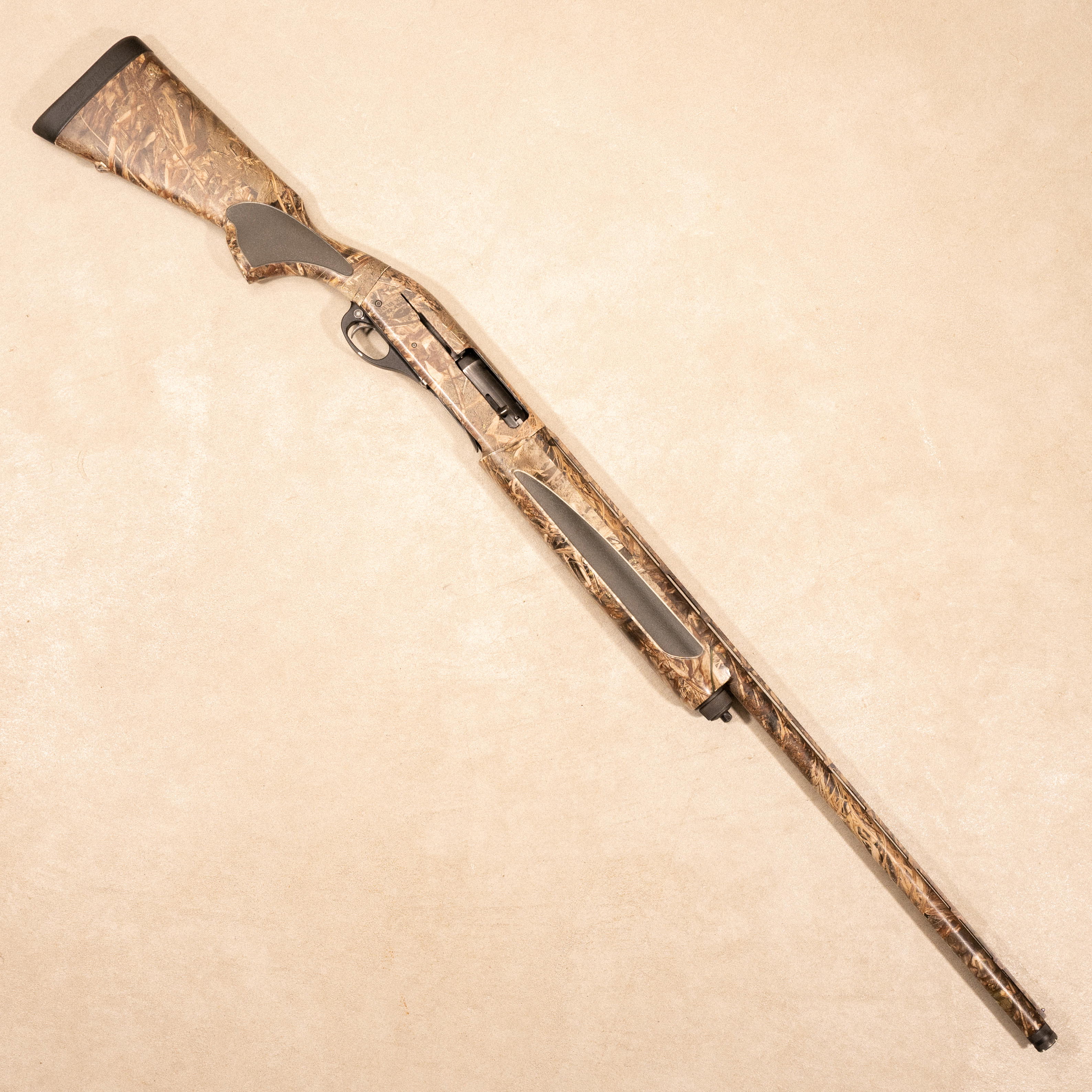 Stock: Synthetic camouflage stock with overmolded grip panels