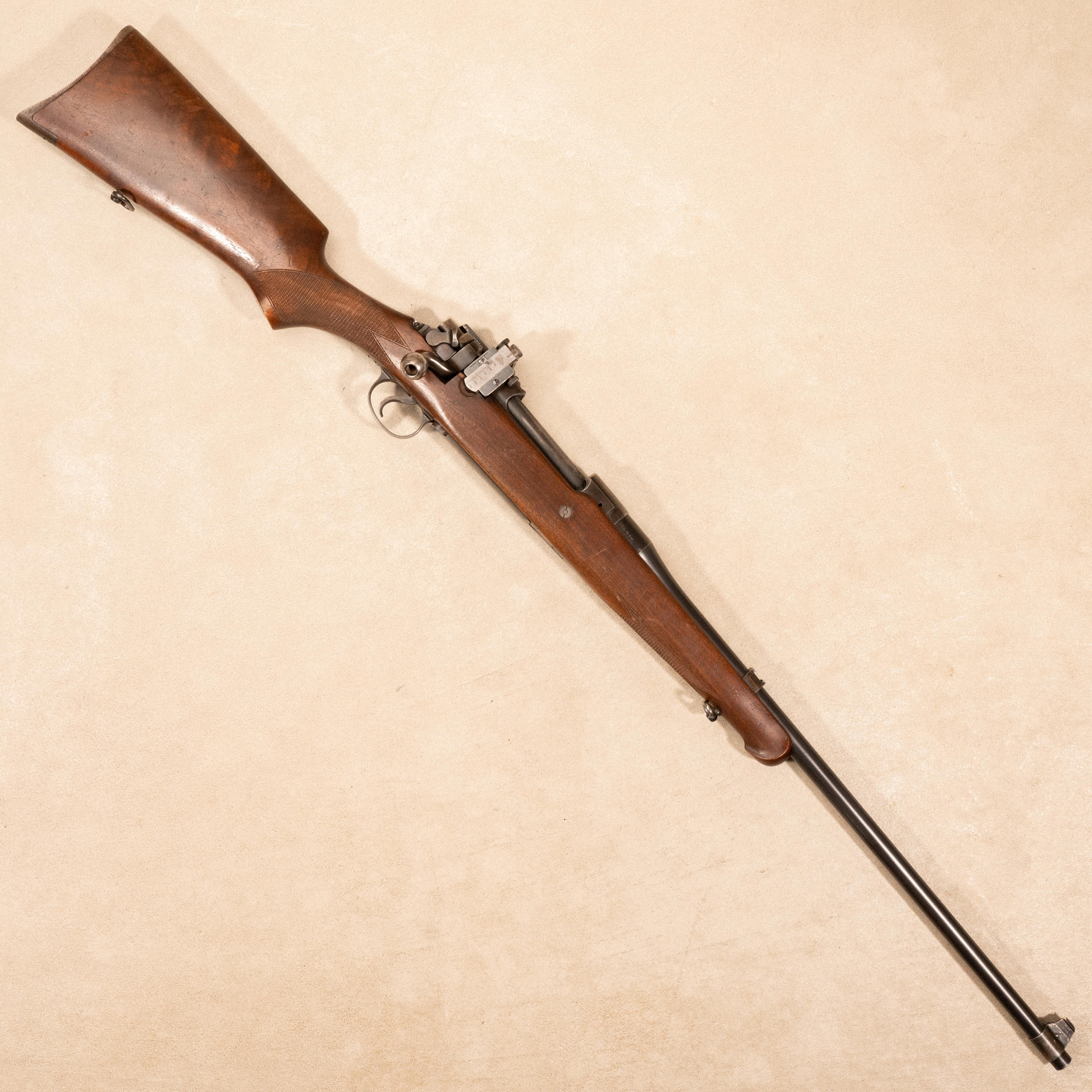 This example bears a serial number placing its manufacture in 1927. The rifle is fitted with a Marble blade front sight and a Lyman No. 48 RS micrometer receiver peep sight with elevation and windage adjustment knobs. The walnut stock is configured with a schnabel forend tip, as well as front and rear sling swivel loops. No accessories included.