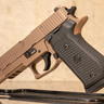 This Emperor Scorpion variant is distinguished by its bronze colored finish applied to the slide, paired with textured grip panels that provide a secure purchase under recoil. The 5 inch barrel supports full power 10mm performance, while the standard P220 control layout maintains familiarity for users of classic SIG pistols. The platform is well suited for duty use, field carry, or range shooting where power and controllability are priorities.