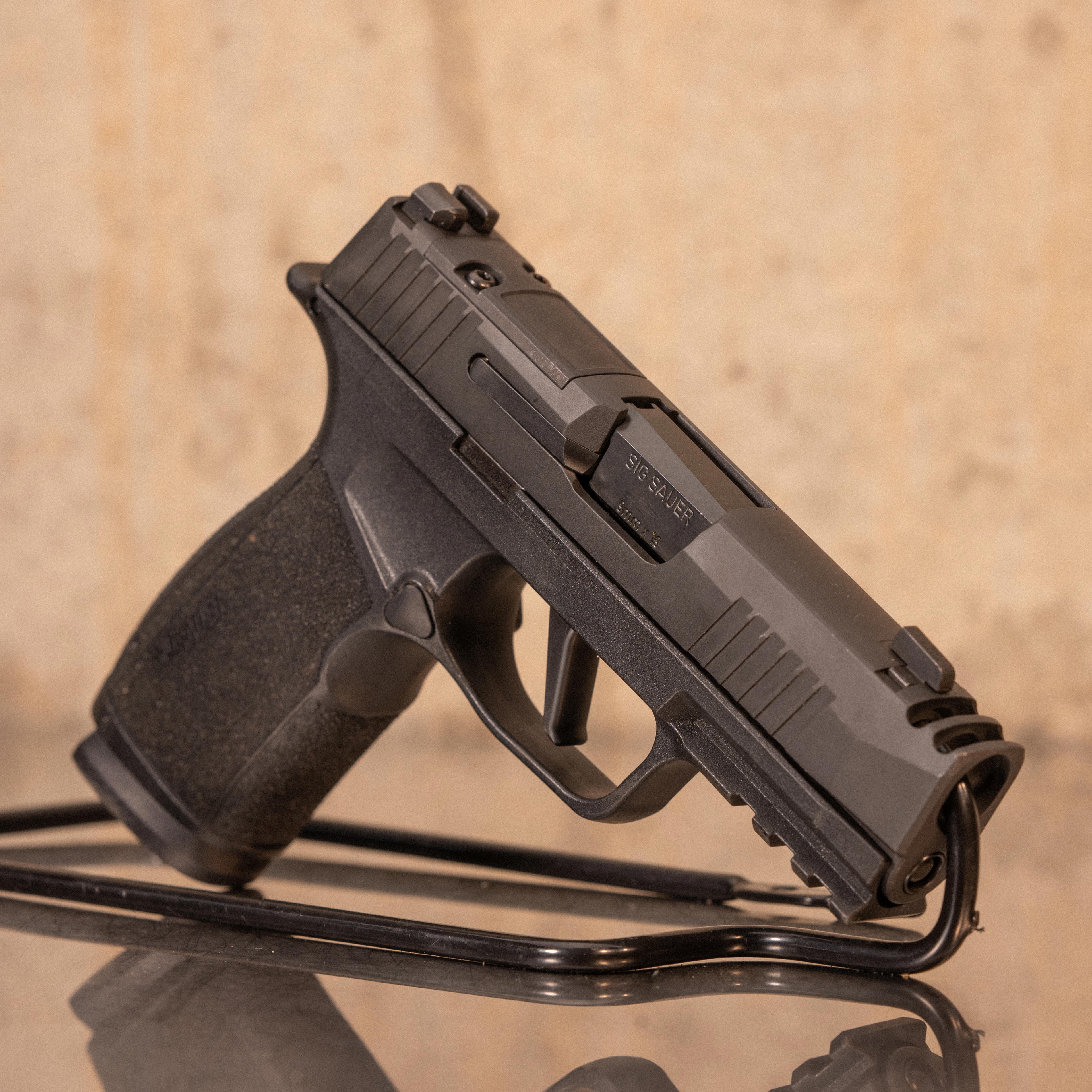 The SIG Sauer P365 X-Macro Comp is a compensated variant of the X-Macro platform that retains the slim P365 footprint while increasing control and capacity. The 3.1 in barrel sits in a compensator-milled slide that reduces muzzle rise without requiring a threaded barrel, improving shot recovery in rapid strings.