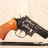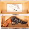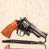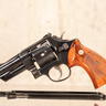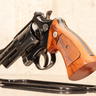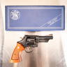 This example features a 4 inch barrel with a bright blue finish throughout. The revolver is fitted with checkered Goncalo Alves target grips, a .265 inch target trigger, and a .400 inch serrated target hammer. Sights consist of a black ramp front sight paired with a Smith & Wesson micrometer click adjustable rear sight. Based on the serial number, this revolver is believed to have been manufactured in 1983 or 1984. Original box (product code 0243024041) with wrapping paper, safety manual, service card, parts catalog included, screw driver tool, and cleaning brush rod.
