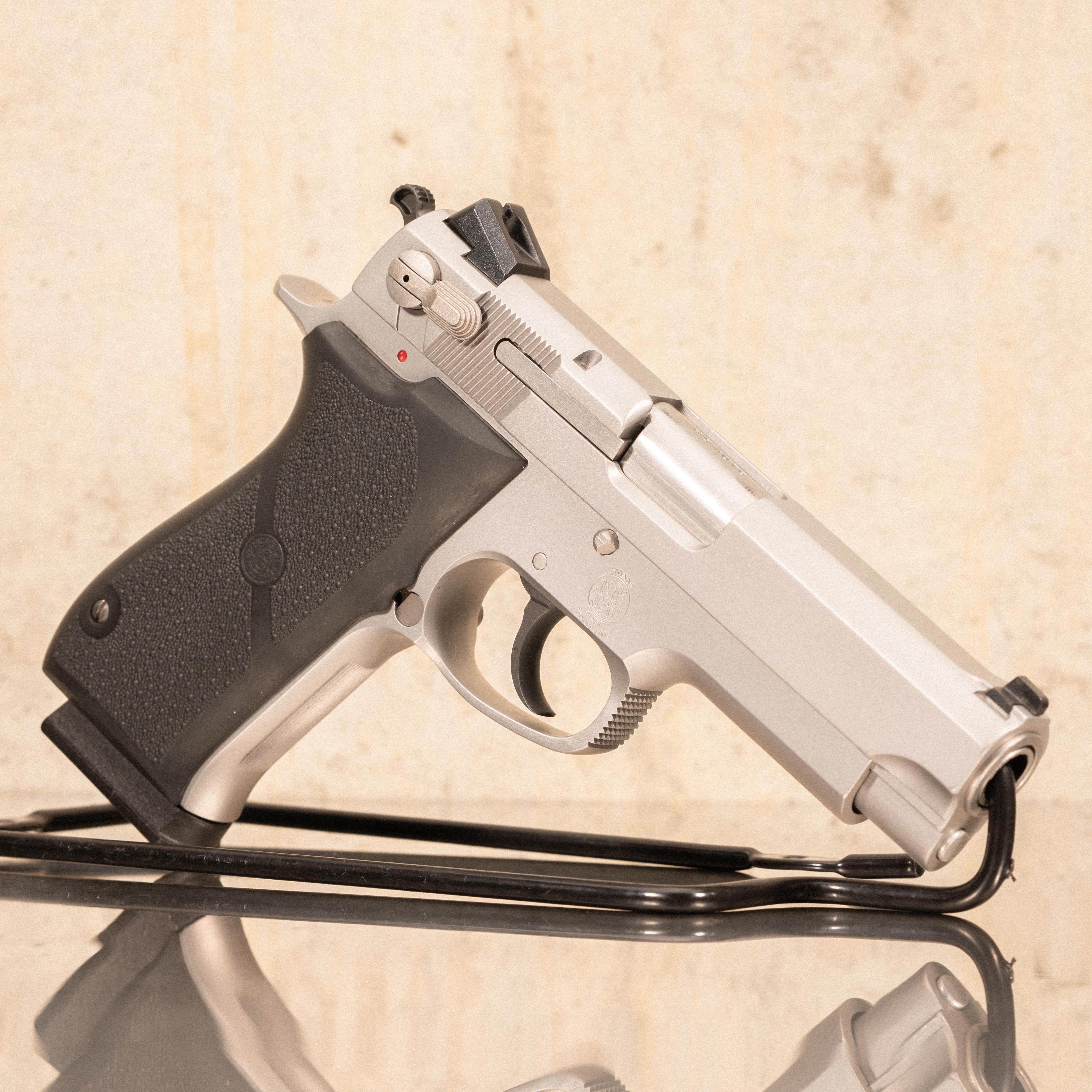 The Smith & Wesson 4566 is a member of S&W's Third Generation semi-automatic pistol series, chambered in .45 ACP. It operates on a short recoil, locked breech system with a Browning-type tilting barrel and uses a traditional double action/single action trigger mechanism. The 4566 uses a shortened 4.25 inch barrel compared to the full size Model 4506, while feeding from 8-round single stack magazines. The Third Generation series was produced by Smith & Wesson from the late 1980s through the early 2000s and was widely adopted by law enforcement agencies across the United States.