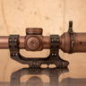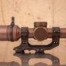 The optic is built around a 30mm aluminum tube with fully multi-coated lenses for improved clarity and light transmission. Finished in Type III hard-anodized tan, the housing provides durability and corrosion resistance under field conditions. Illumination is powered by a CR2032 battery and controlled by a side-mounted adjustment dial. Turrets are low-profile, with capped windage and exposed elevation. The Reptilia AUS mount is machined from 7075-T6 aluminum, Type III hardcoat anodized in black, and provides a 1.93-inch optical centerline height for a rigid, lightweight interface.