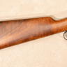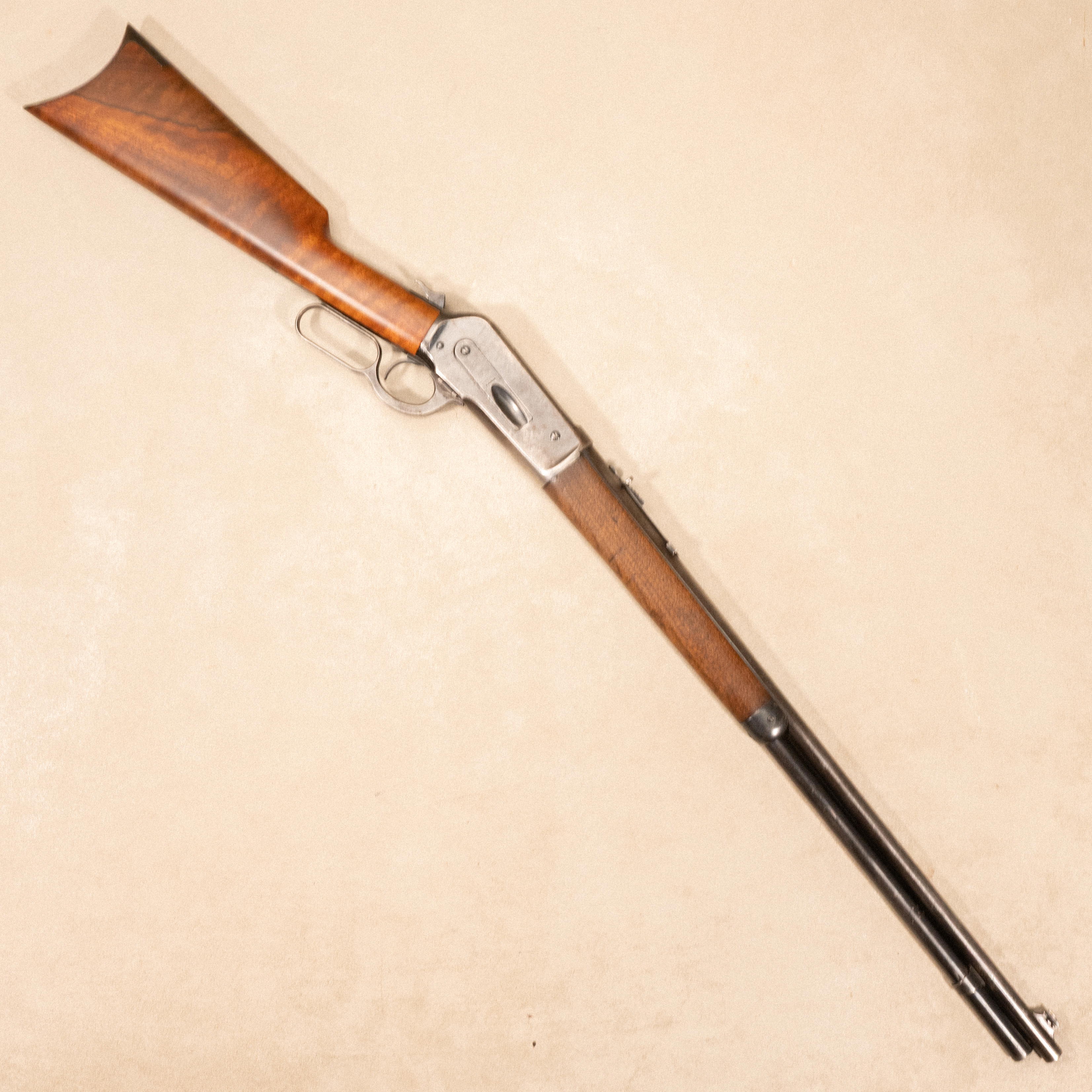 This example was manufactured in 1905 and is chambered in .33 WCF. The .33 WCF (Winchester Center Fire) cartridge was introduced in 1902 specifically for the Model 1886, offering a modern smokeless powder cartridge suitable for heavy game in a lever action platform. It is fitted with a 24 inch round blued barrel and a full length tubular magazine. The rifle features a walnut stock with a curved steel buttplate and a walnut forend. The front sight is a Marble's Sheard with gold bead, and the rear sight is an adjustable semi buckhorn. No original box or accessories included.