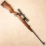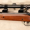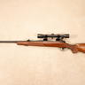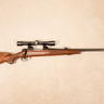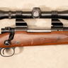 The Winchester Model 70 is a bolt action rifle produced by Winchester Repeating Arms, introduced in 1936 and widely regarded as one of the most significant American bolt action sporting rifle designs. The Model 70 is built around a two lug bolt action feeding from an internal magazine. The rifle is fitted with a hooded blade front sight and a semi buckhorn rear sight, with the receiver being drilled and tapped for scope mounting. The walnut stock features a Monte Carlo comb with cheekpiece with diamond checkering throughout.