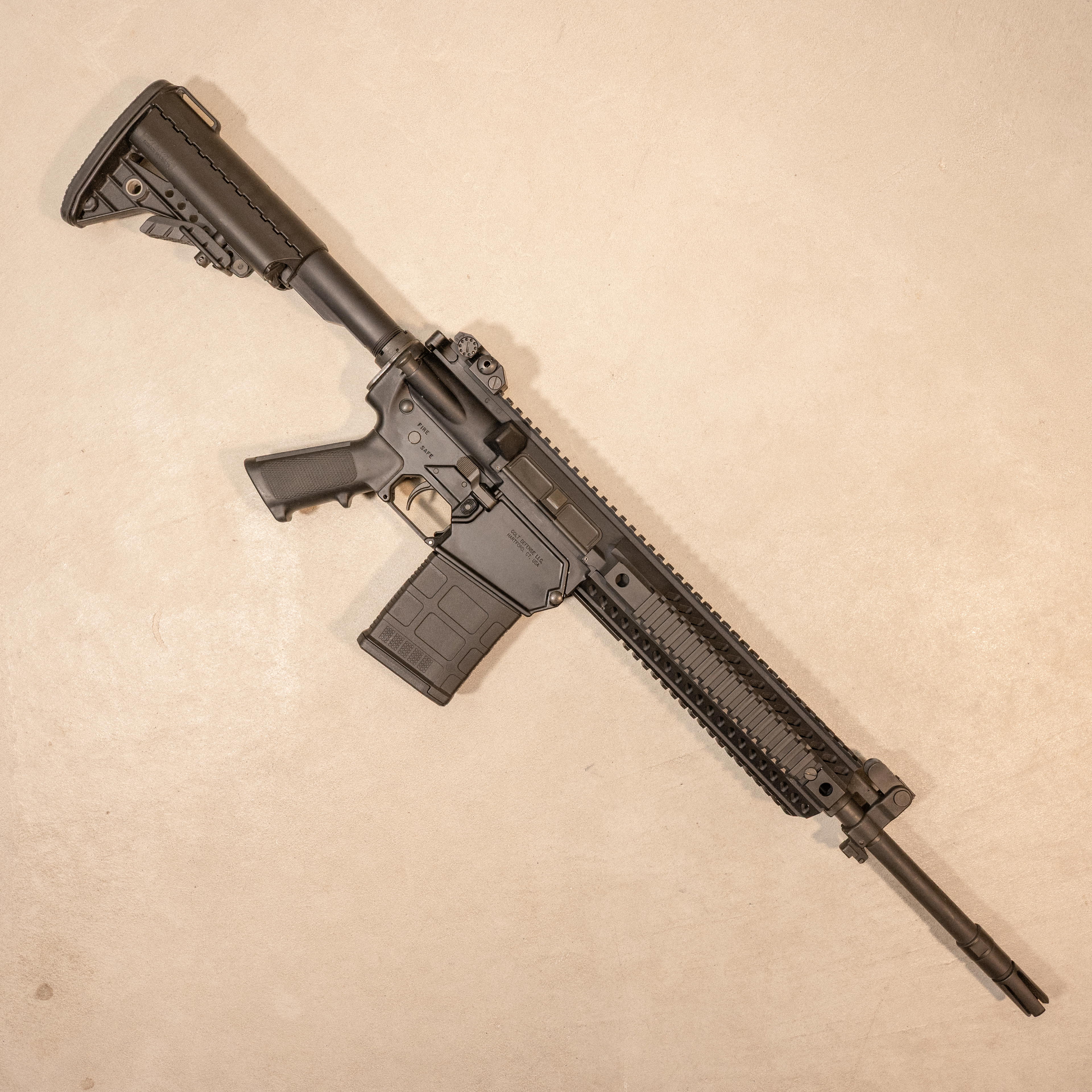 The Colt LE901 Modular Carbine is a semi-automatic .308 Winchester rifle built around Colt’s multi-caliber modular receiver system. The rifle combines AR-10 pattern .308 operation with the ability to accept AR-15 uppers through an adapter. Accompanied by one magazine.