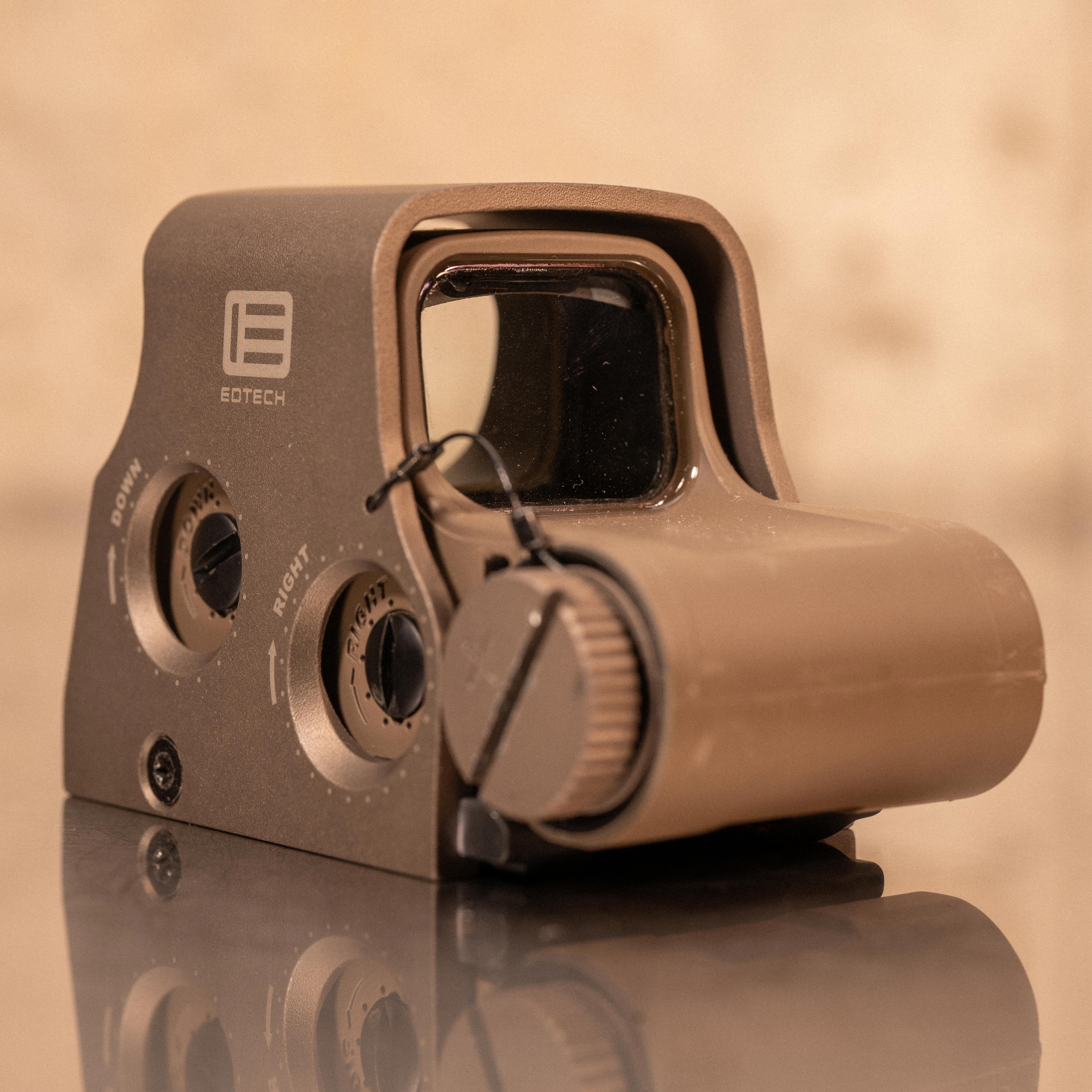 The EOTech EXPS3-2 Tan holographic sight offers fast target acquisition with a 68 MOA ring and 1 MOA dot reticle. Featuring night vision compatibility, a quick-detach mount, and 600-hour battery life, this optic is ideal for close to mid-range engagements. Original box not included.