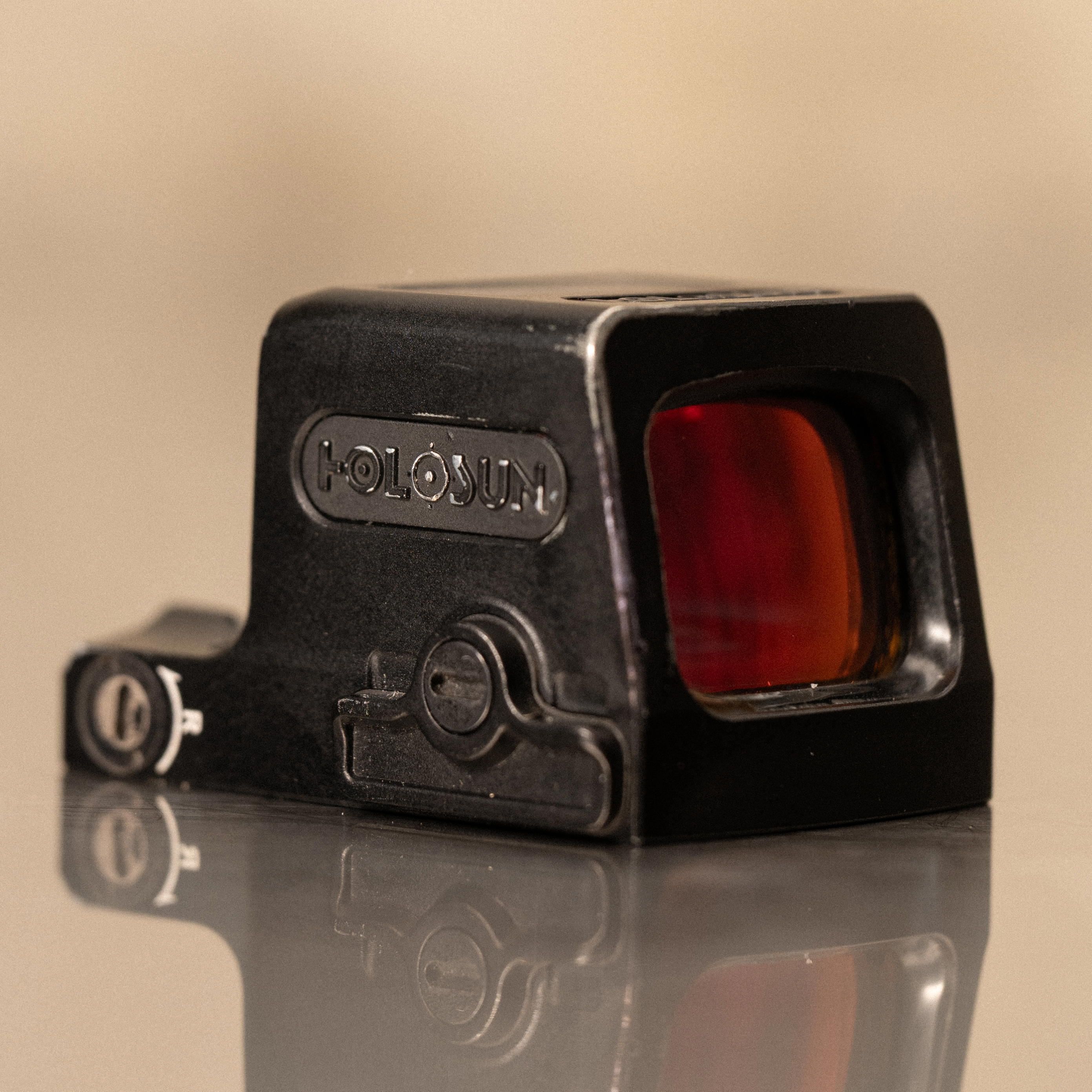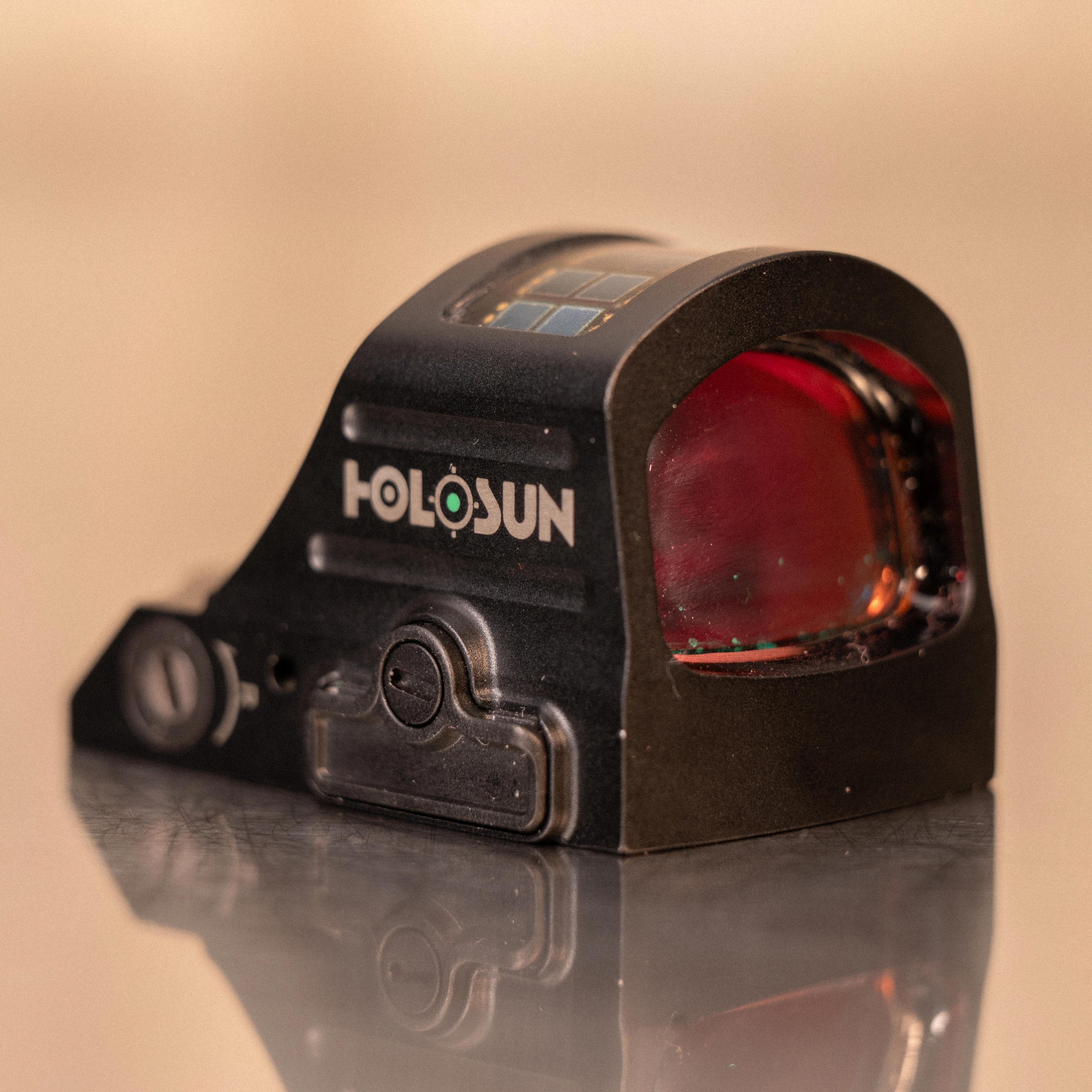 Holosun 507K X2 open-reflex red dot sight with 2 MOA dot and 32 MOA circle Multi-Reticle System, Shake Awake, and 50,000-hour battery life. Built from 7075 aluminum and uses the Holosun K footprint (modified RMSc). Original box not included.
