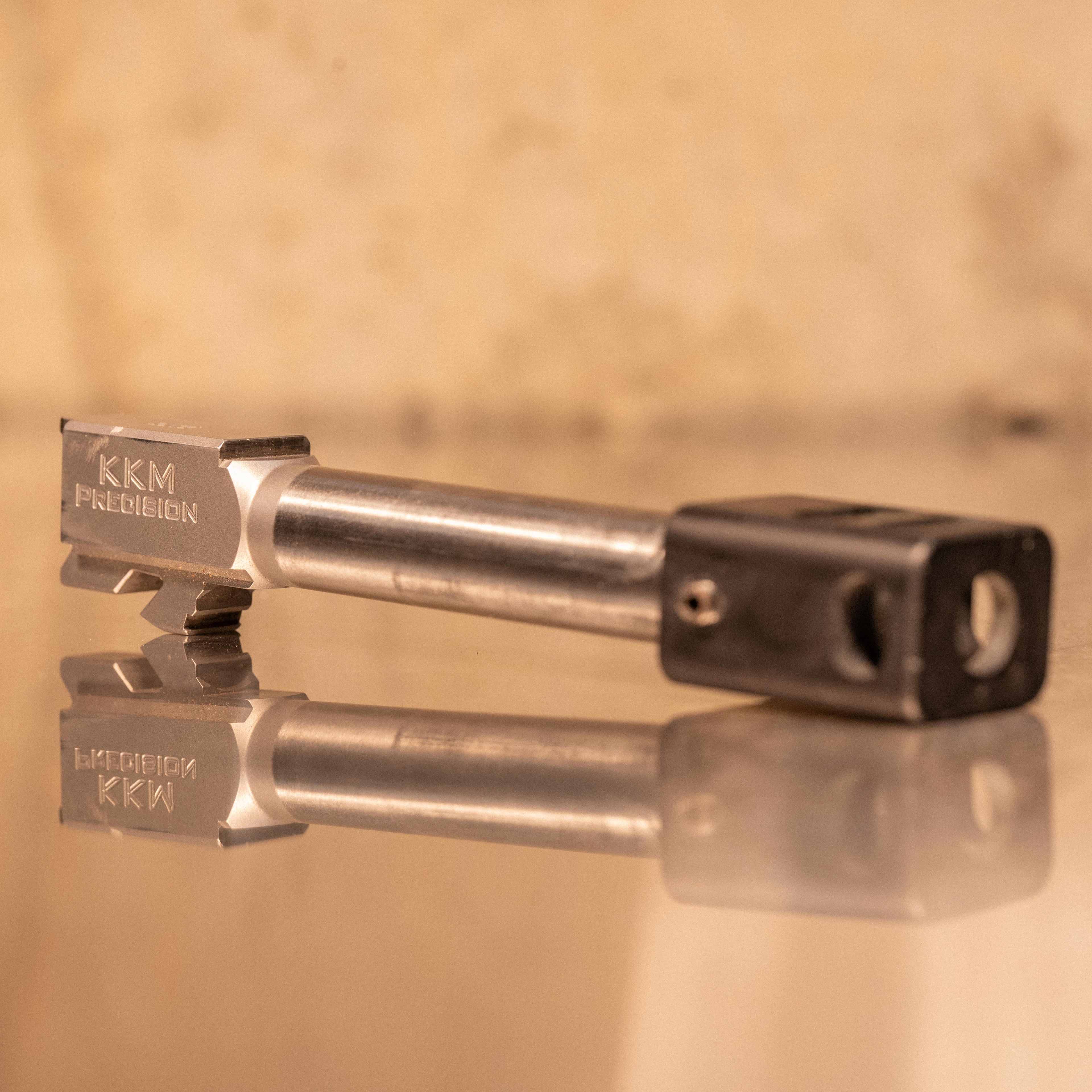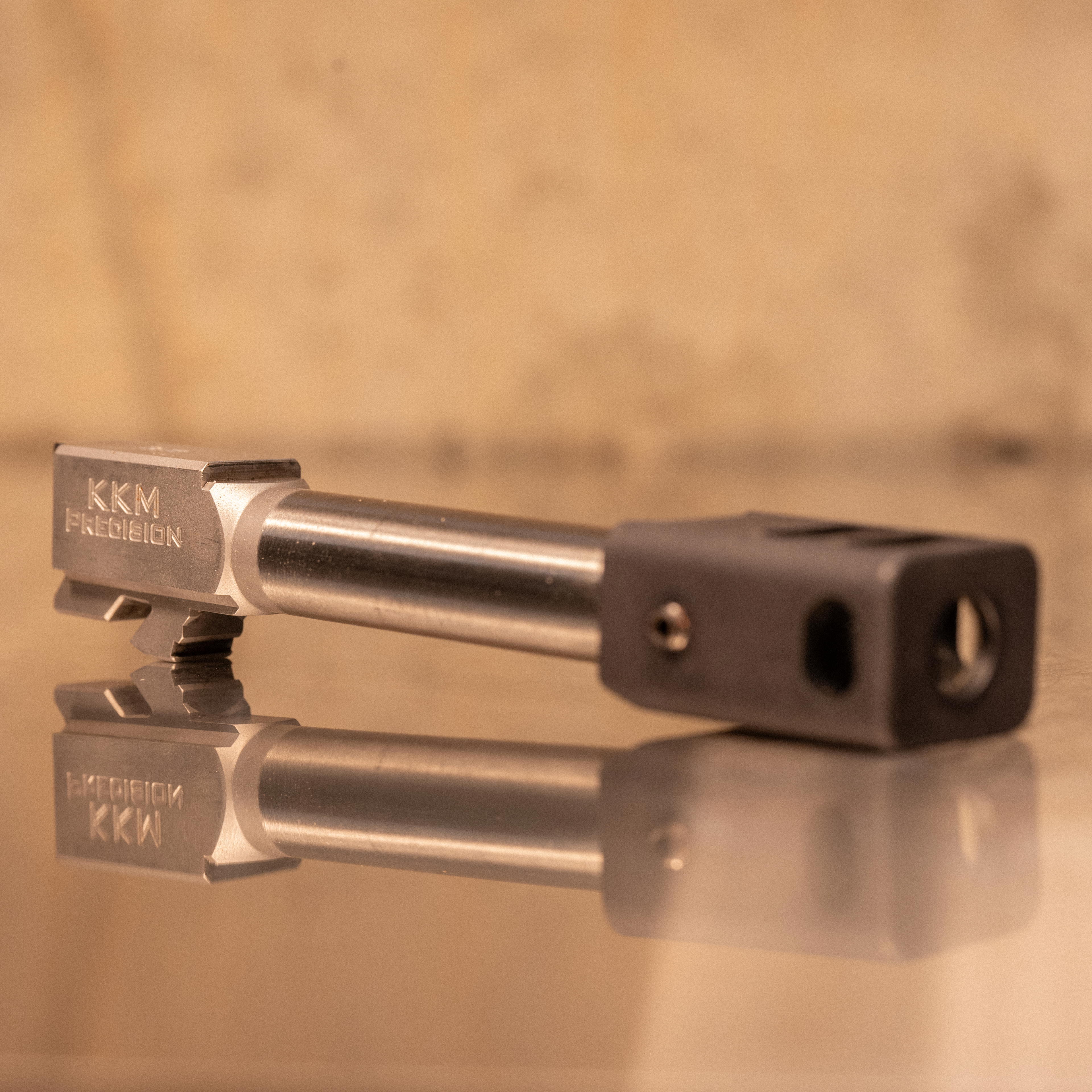 This KKM barrel and compensator combo is designed for Glock 19/G45 Gen 5 pistols, featuring a match-grade 9mm barrel with 9/16x32 threading and a 4-port compensator. CNC machined from 416R stainless steel, it offers superior accuracy and reliability. Not compatible with Gen 1-4 models.